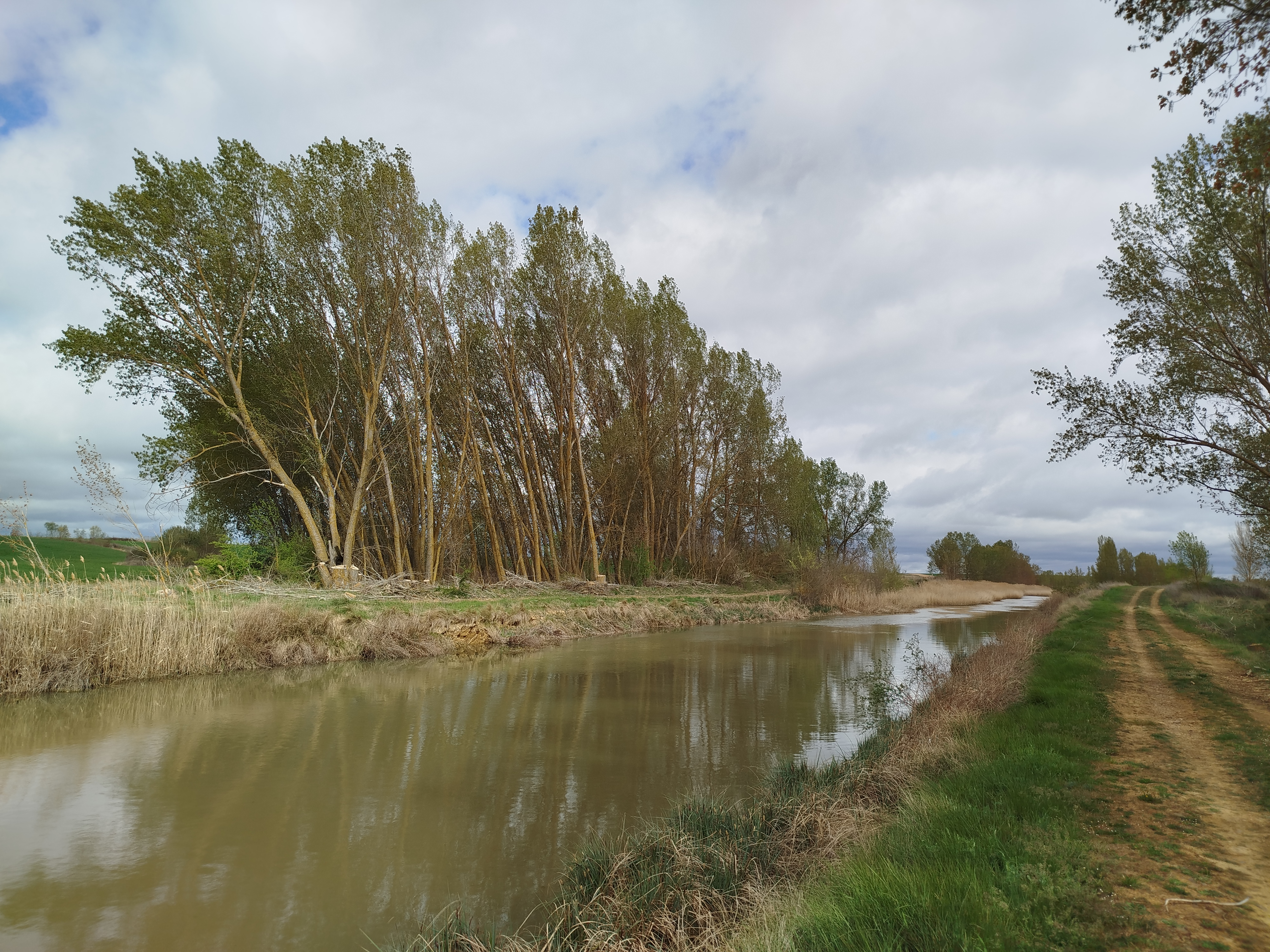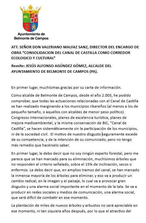 Tras el parón vacacional de las Fiestas de Pascua, y una vez que fui documentado del proyecto que se estaba ejecutando sobre el Canal de Castilla por personas a los que estoy inmensamente agradecidas. El revuelo entre la población afectada por los municipios por los que atraviesa las obras de deforestación del Canal era ya bastante considerable, municipios como Becerril de Campos, Paredes de Nava ya se habían visto afectados y otros en dirección a Medina de Rioseco, final del Ramal de Campos, como Belmonte de Campos, aunque aún no se habían visto afectados, los árboles ya estaban marcados con pintura roja y sus alcaldes empezaron a exigir por carta a la CHD detener los trabajos, aunque algunos, como los dos primeros municipios, pese al llamamiento público alertando a la población de los que se iba a hacer en el lugar, ya se llegaba tarde.