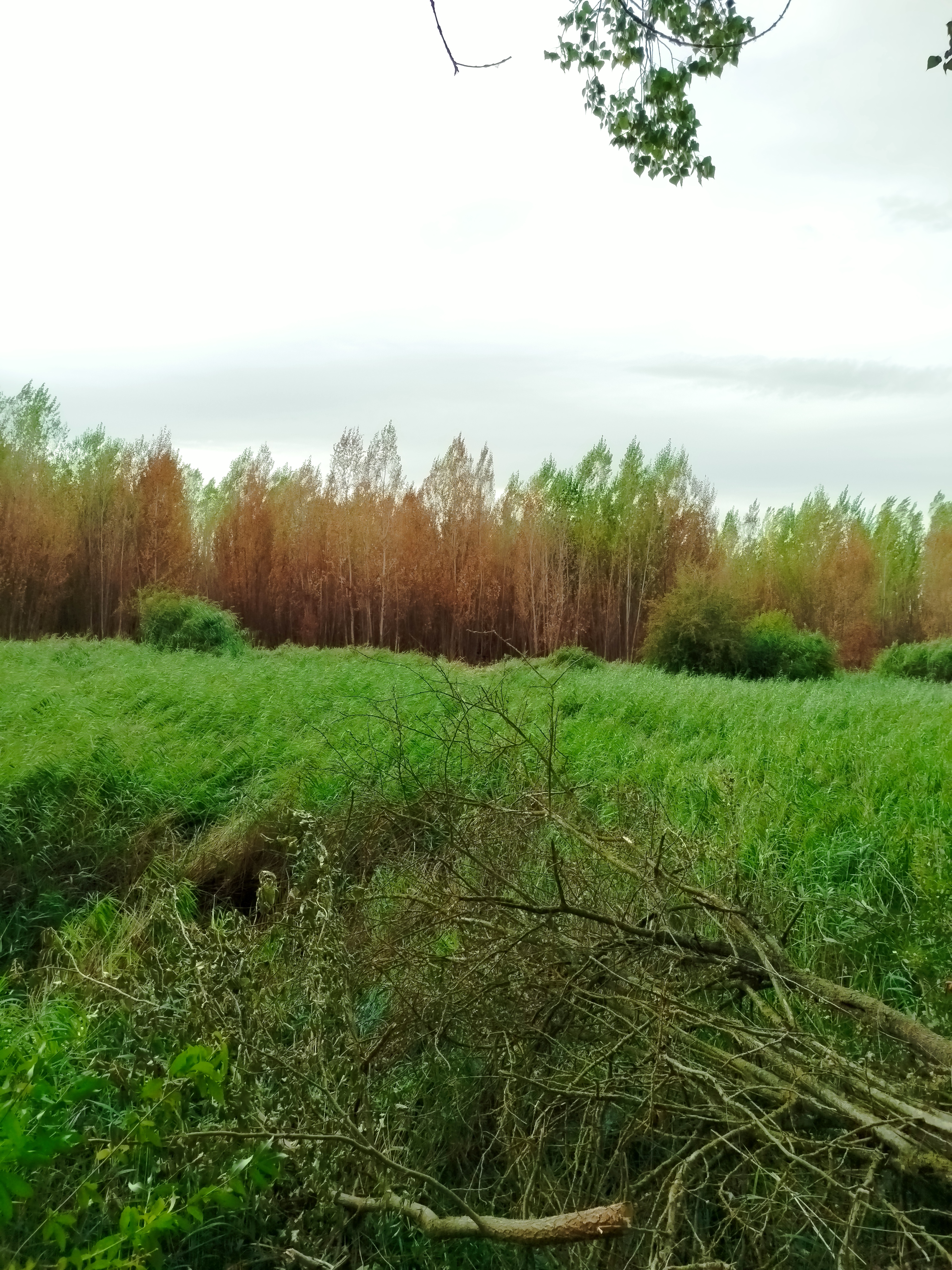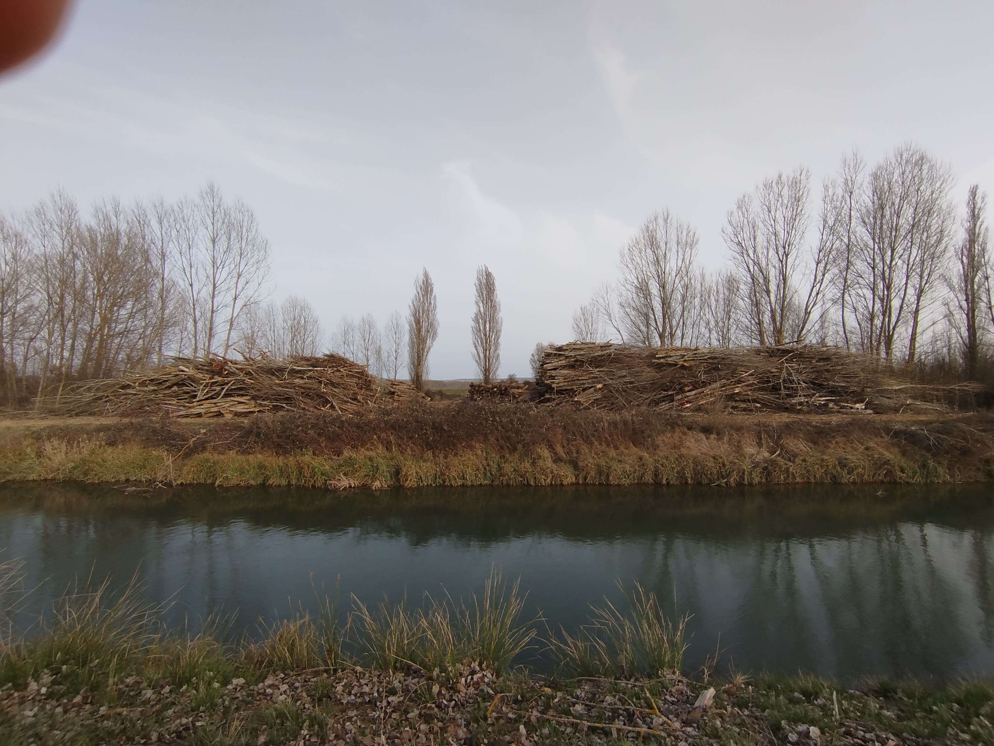 Continuamos adelante y el panorama cada vez era aún más desolador, llegamos a la altura del derrame del Canal en el Ladrón de Calahorras y en la margen derecha de la parva se encontraban apilados junto a una chopera varias pilas de troncos.