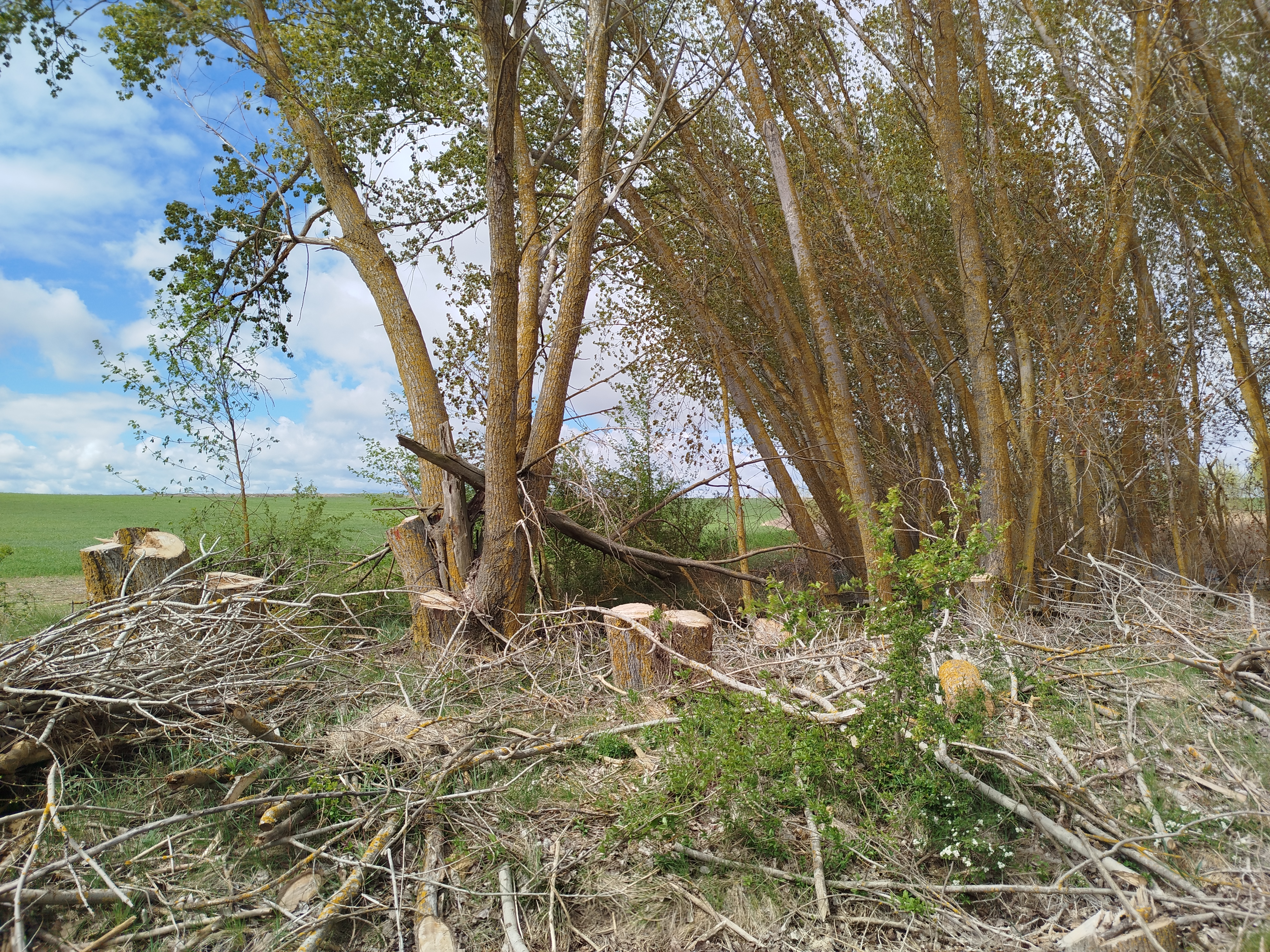 Apilamiento de troncos por detrás de la trinchera que separa la parva o camino de sirga de la margen izquierda del Canal de Castilla de un camino vecinal a la altura del Puente del Gallo (Ribas de Campos).Talas de chopos efectuadas en la margen derecha del Canal de Castilla, junto a un humedal tras superar el Puente del Gallo en dirección al Puente de Besana (Amusco).Detalle de las talas de chopos efectuadas en la margen derecha del Canal de Castilla, junto a un humedal tras superar el Puente del Gallo en dirección al Puente de Besana (Amusco).Detalle de la tala de alguno de los chopos en la margen derecha del Canal de Castilla, junto a un humedal tras superar el Puente del Gallo en dirección al Puente de Besana (Amusco).Detalle de la tala de alguno de los chopos en la margen derecha del Canal de Castilla, junto a un humedal tras superar el Puente del Gallo en dirección al Puente de Besana (Amusco).Siguiendo por la margen izquierda del Canal en dirección al Puente de Besana (Amusco), aparecen nuevas talas o resalveos.Detalle de imponente ejemplar de chopo, totalmente sano y erguido, brutalmente talado.Arriba y abajo, detalle de otro ejemplar de chopo, totalmente sano y erguido, brutalmente talado en la margen izquierda del Canal, camino del Puente de Besana (Amusco).Arriba y abajo, nuevamente detalle de otro ejemplar de chopo, totalmente sano y erguido, brutalmente talado en la margen izquierda del Canal, camino del Puente de Besana (Amusco).Otro ejemplar de chopo, totalmente sano y erguido, brutalmente talado en la margen izquierda del Canal, camino del Puente de Besana (Amusco).Otro ejemplar de chopo, totalmente sano y erguido, brutalmente talado en la margen izquierda del Canal, camino del Puente de Besana (Amusco).Otro ejemplar de chopo, totalmente sano y erguido, brutalmente talado en la margen izquierda del Canal, camino del Puente de Besana (Amusco).Arriba y abajo, detalle de apilamiento de troncos junto al Puente de Besana (Amusco).Algunas talas y resalveos efectuadas sobre ejemplares de chopos junto a la Laguna de Besana, próximo al Puente de Besana (Amusco).