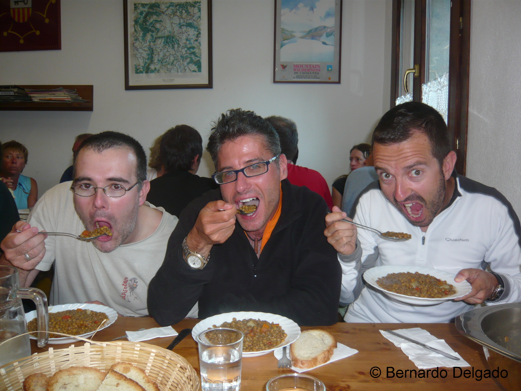 Cenando en Colomers, ¡muertos de fame, esas lentejas sabían a gloria bendita!