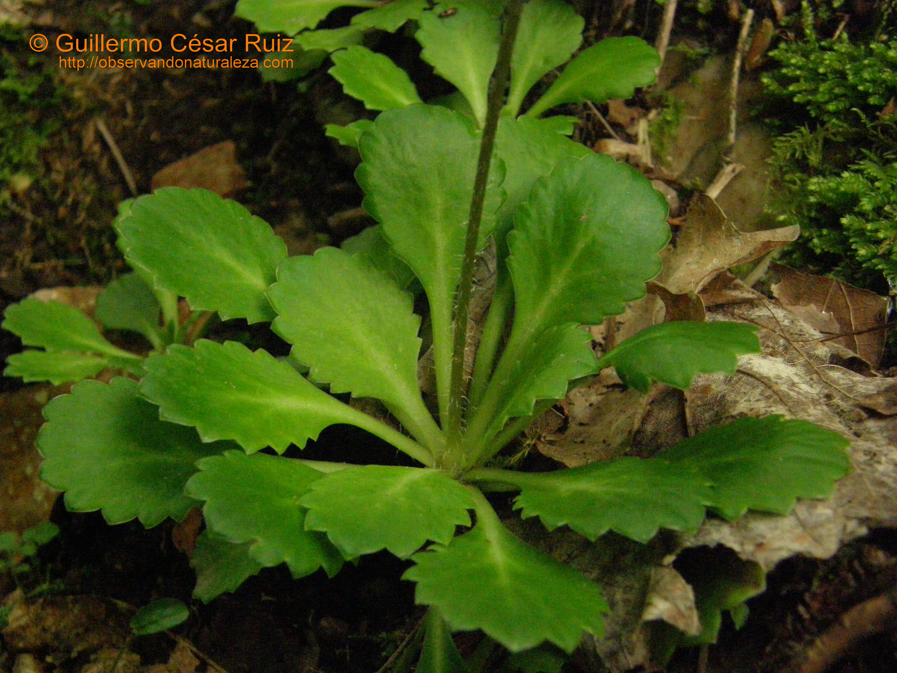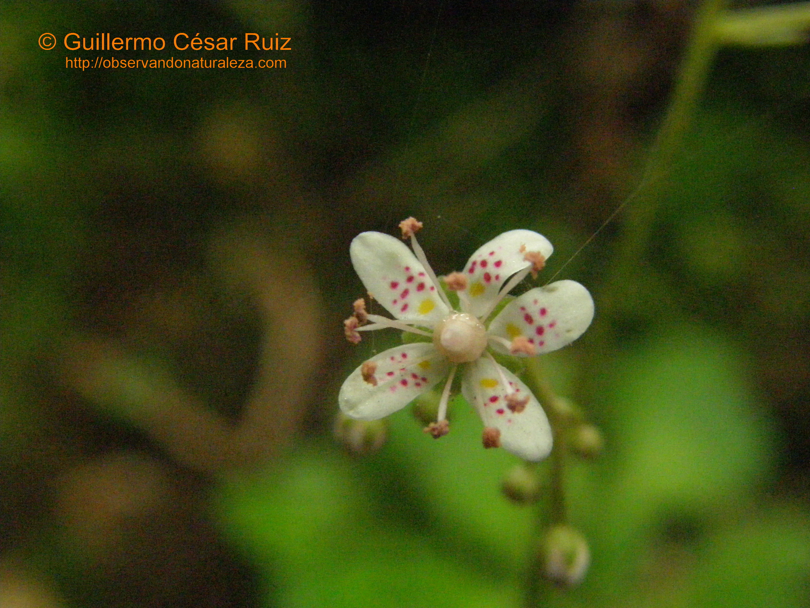 Saxifraga spathularis, planta rupícola e higrófila propia de taludes rezumantes silicícolas.