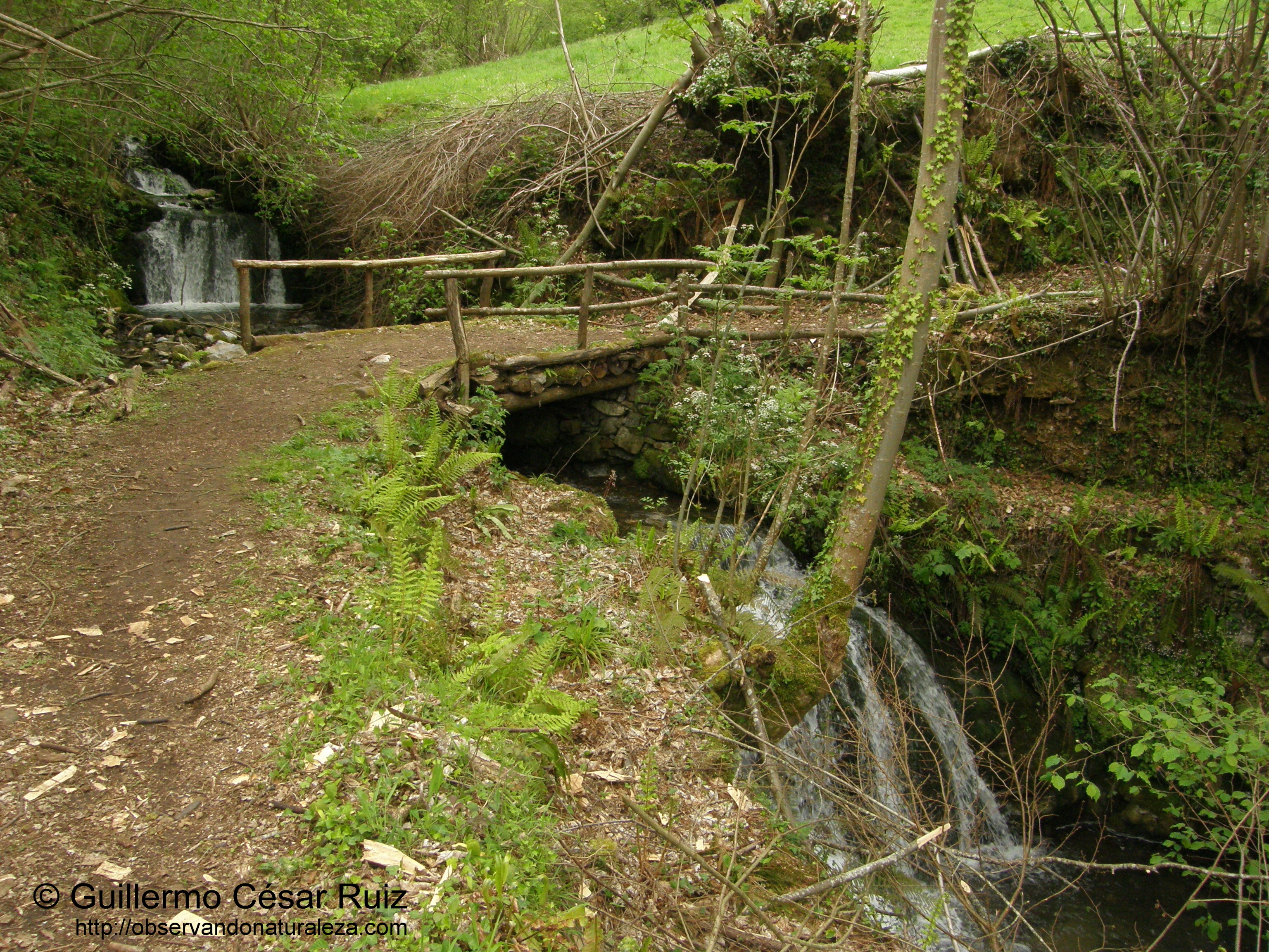 El camino llega por fin a la zona conocida como La Gualta, dónde aparece un viejo puente de madera de viejos troncos cubiertos por hojarasca y musgo, medio podridos (es el puente de Los Pontiquinos), donde se cruza al otro lado del arroyo de Valmauru o Banduxu, subiendo por un tramo de camino empedrado bastante empinado y flanqueado por viejos carbayos y castaños. Seguimos ascendiendo en zig-zag, mientras que poco a poco la foz se va abriendo entre innumerables saltos de agua como en La Molina y La Pousa, donde se encuentran los saltos más espectaculares tales como el Remexón de Villaflor, de unos 12 m de altura.