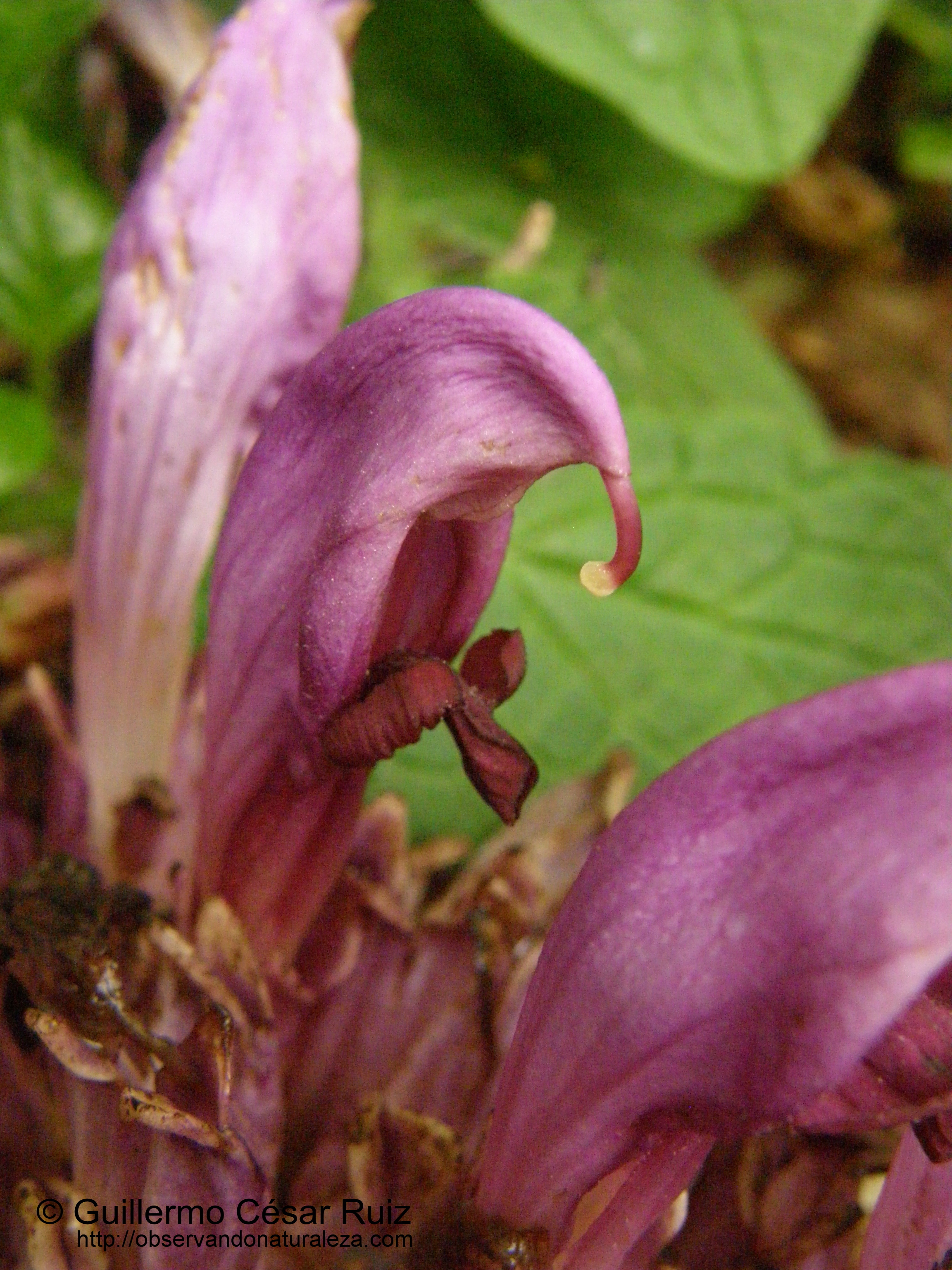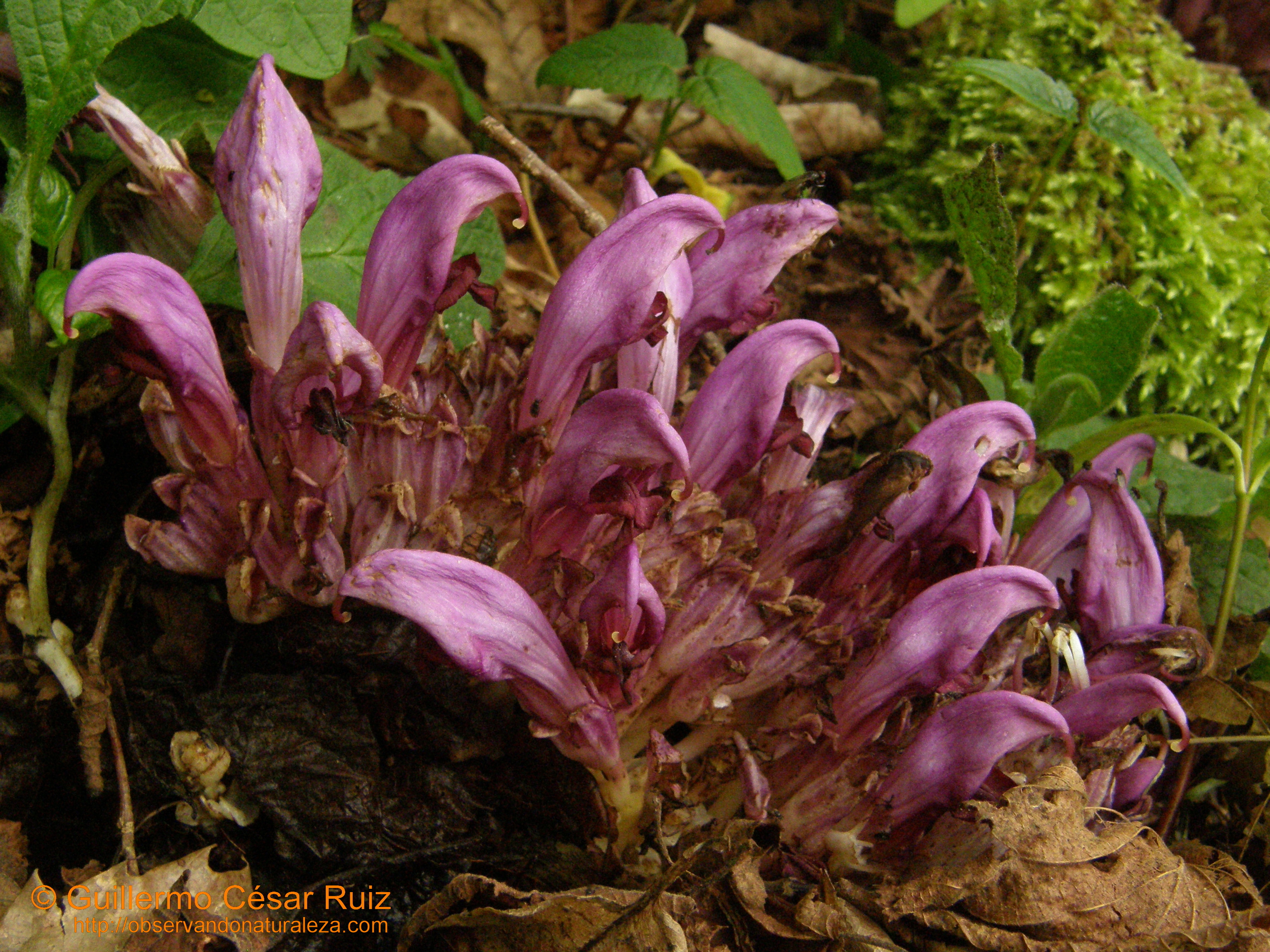 Canil de busgosu o clandesinas (Lathraea clandestina), planta hemiparásita de raices de salgueros y umeros