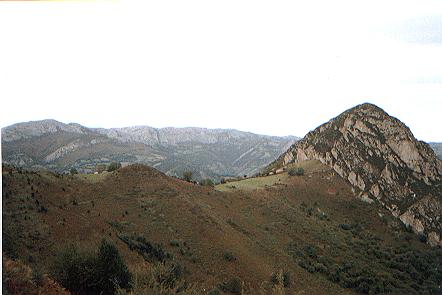 Después del descanso seguimos nuestro camino bordeando un precioso fayéu/hayedo, hasta alcanzar el alto de una lomba, El Colladín, desde el cual podemos ver nuestro entorno mucho mejor. Desde allí podemos contemplar mejor este bosque de fayas/hasyas que cuelga de la falda nordeste del impresionante murallón calizo que hace de cierra hacia el noroeste la Sierra de Sobia. En este lugar se tiene constado no hace muchos años osos y gallos monteses/urogallos, hecho que se puede comprobar en algunas de las cumbres próximas como el Picu Osa.