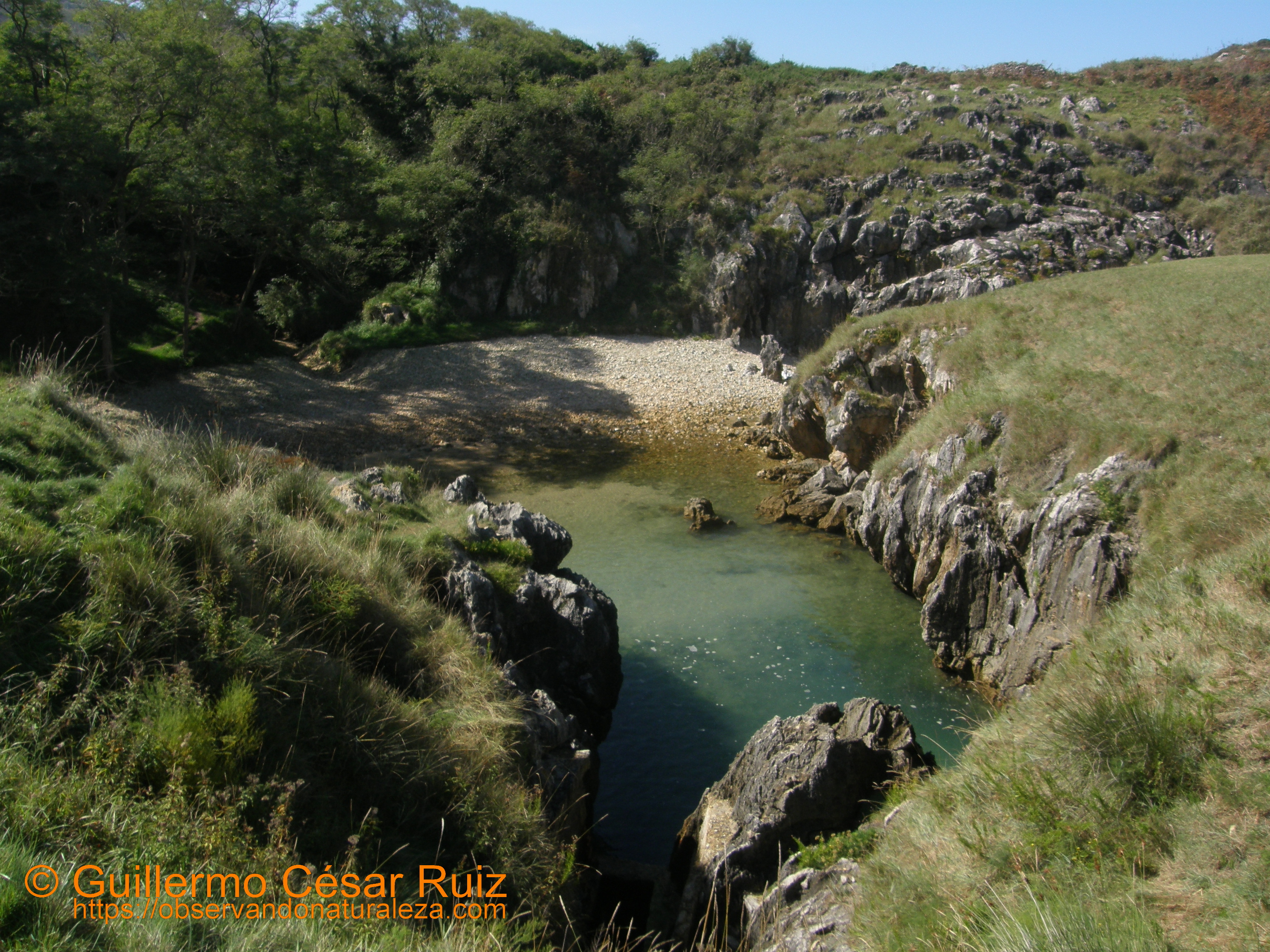 El complejo Cueva–Playa de Cobih.eru/Cobijero (también recientemente conocido popularmente como «playa de las acacias») y anexo a el la Playa El Molín en Buelna (Llanes). Aunque no se encuentra ubicado exactamente en el mismo trazado de la senda costera en el primer tramo que transcurre de Bustio a Pendueles, merece la pena desviarse 500 metros al noreste, una vez que se alcanza la aldea de Buelna, para visitar esta maravilla geológica declarado Monumento Natural en el 2001. Tanto una playa como la otra se son dos playas interiores de origen kárstico (al igual que su «hermana» Gulpiyuri al este de Llanes), resultado del hundimiento de las bóvedas que cubrian dos dolinas próximas a la línea del mar, y cuyos fondos se encontraban unidas al mar mediante sendas galerías subterráneas, hecho que explica que la entrada de agua en la marea alta procediese a la apertura de las mismas erosionando aún más el entorno configurando así su aspecto actual. Otra peculiaridad de este complejo además de estas playas, es su cueva situada entre Cobih.eru y El Molín. En su interior se pueden observar estalactitas y estalagmitas, así como sedimentos fangosos. Cobih.eru ambién destaca por estar separada de la costa por un resalte rocoso erosionado que forma un arco de piedra, al que se llama “Salto del Caballo”.