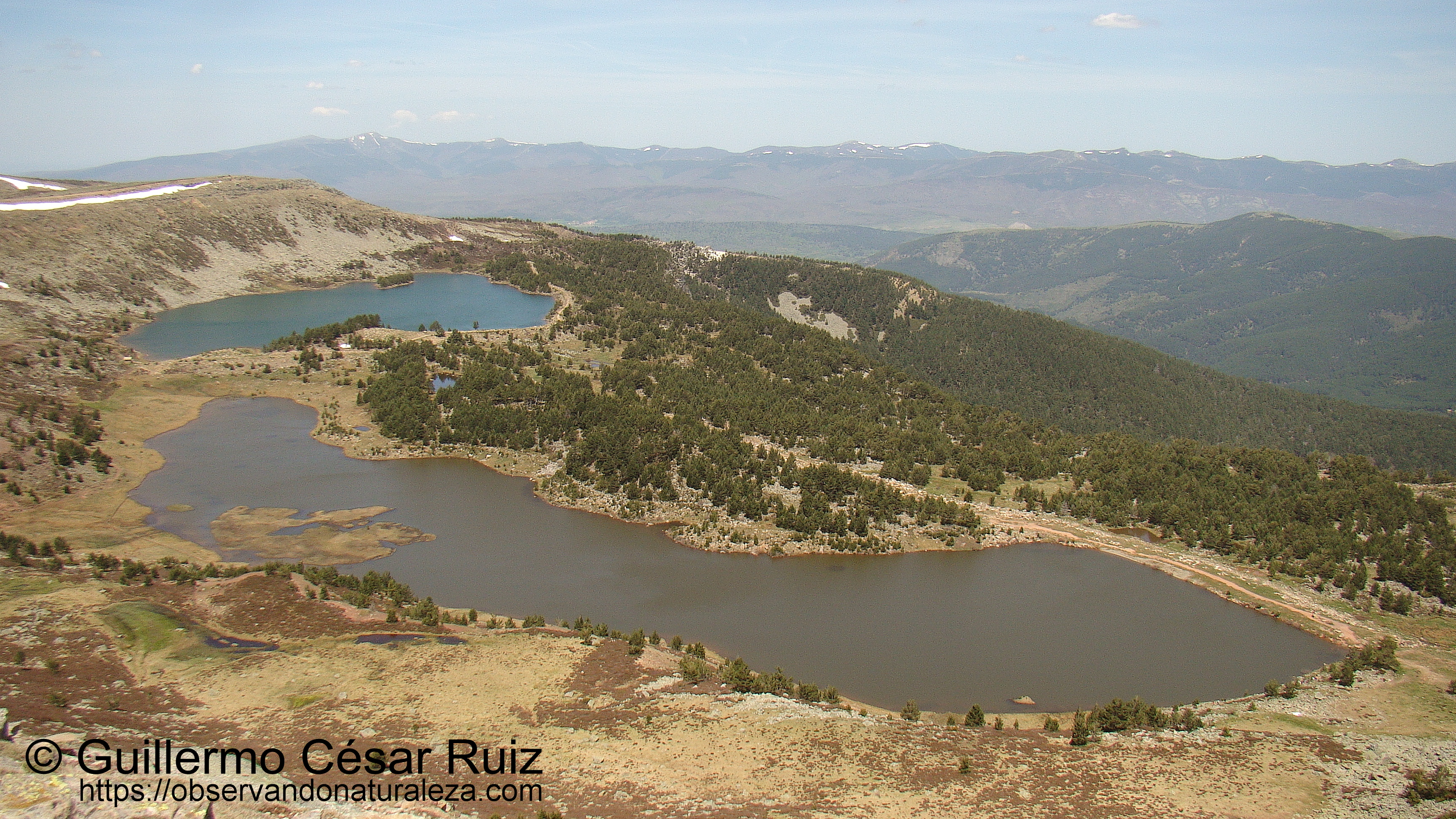 Las lagunas glaciares Larga en primer término y Negra detrás desde el Alto de Campiña a 2.049 m de altitud.