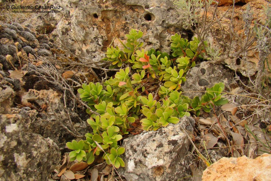 Gayuba o uva de oso, Arctostaphylos uva-ursi, en flor y fruto